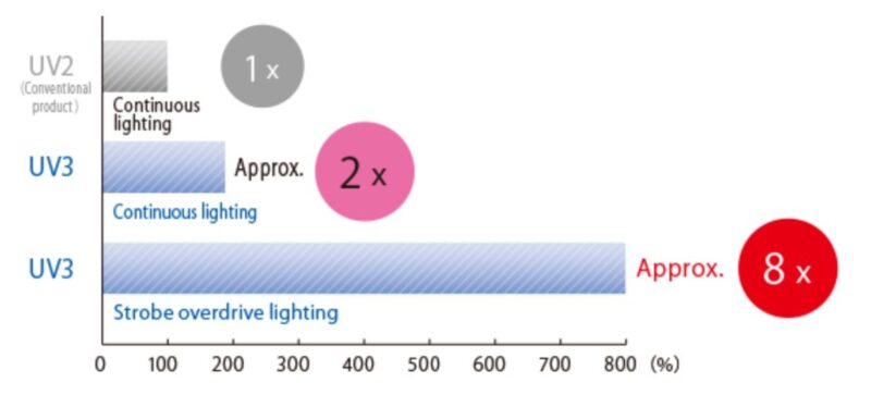 透過使用高輸出的UV-LED,與傳統產品相比,大幅提高輸出